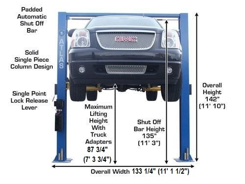 The Atlas® 9OHSC two post above ground lift is the perfect choice for those smaller commercial repair facilities or “Mr. Homeowners” who demand the highest quality at the absolute best price. The 9OHSC is a TRUE 9,000 lb. capacity two post lift that offers a great value to the customer.