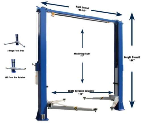The iDeal 10k ALI Certified 2-Post Overhead Lift is perfect for lifting everything from street cars and race cars to a 1 ton dually and includes ALI Certification for those customers needing it. Despite its larger capacity it maintains a low pad height of 4″ for the lowest cars making it extremely versatile along with the bi-symmetric arms. See the ‘Specifications’ tab for complete details and dimensions.
