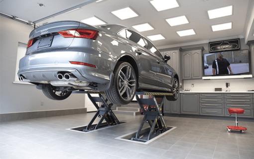 - Flush-mount design for in-ground installation in lube shops, full-service bays and home garage environments looking for a zero-footprint lift
