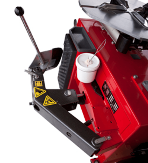 Ranger’s TurboBlast™ bead seating system efficiently shoots a burst of air between the tire and rim, thus seating beads quickly without doing damage to the tire structure. For a more controlled air discharge, the system features a nylon discharge barrel with a contoured tab that locks against the rim.